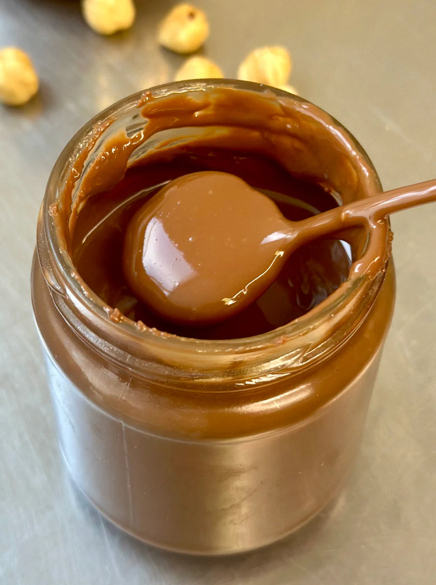 استعدوا لرحلة مليئة بالنكهات مع كريمة الشوكولاتة ببندق بيدمونت، المعززة الآن بحلاوة سكر موسكوفادو الغنية. انغمسوا في مزيج فريد من بندق بيدمونت الفاخر، والشوكولاتة الفاخرة، ونكهات الكراميل المميزة لسكر موسكوفادو. استعدوا لتجربة انغماس خالص لم يسبق لها مثيل! تمت إضافة الفويلتين والبندق المحمص لمزيد من القرمشة.