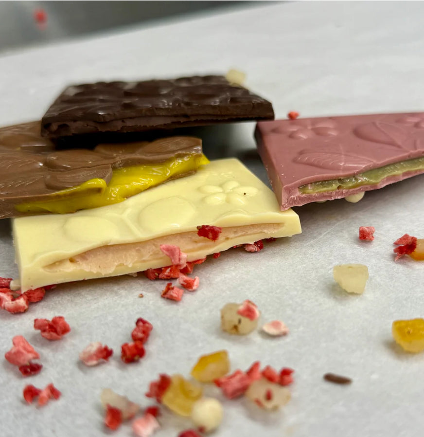 كل قطعة إبداعية من إنتاج دفعة صغيرة، تحتفي بفن التباين - حلو وحار، غني بنكهة الأزهار، جريء وفاكهي. مثالية للإهداء، أو للمشاركة، أو للتذوق ببطء، مربعًا تلو الآخر.